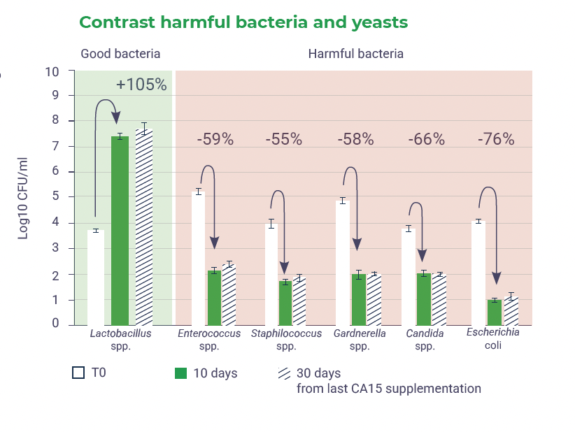 Schädliche Bakterien (E. coli, Staphylococcus, Enterococcus) können bis zu 50% der vaginalen Flora ausmachen und die Befruchtung behindern.